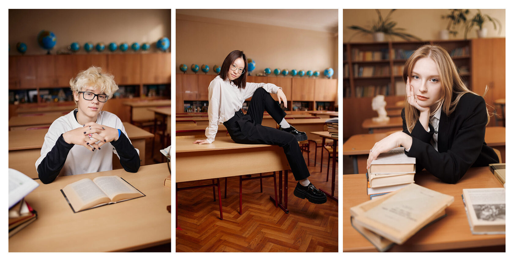 Мы не делаем шаблонные одинаковые альбомы, каждый наш альбом уникален. И очень важно, чтобы стиль съемки подходил к дизайну альбома. Поэтому для разных дизайнов мы снимаем слегка по-разному, и рекомендуем разные локации. Вот такой стиль съемки подойдет именно для этого дизайна выпускного альбом. Контрастная съемка в школеСветлая съемка в школе Мы собрали для вас список лучших фотостудий Москвы – ознакомьтесь и добавьте в заказ понравившуюся студию. Перейти к списку фотостудий →